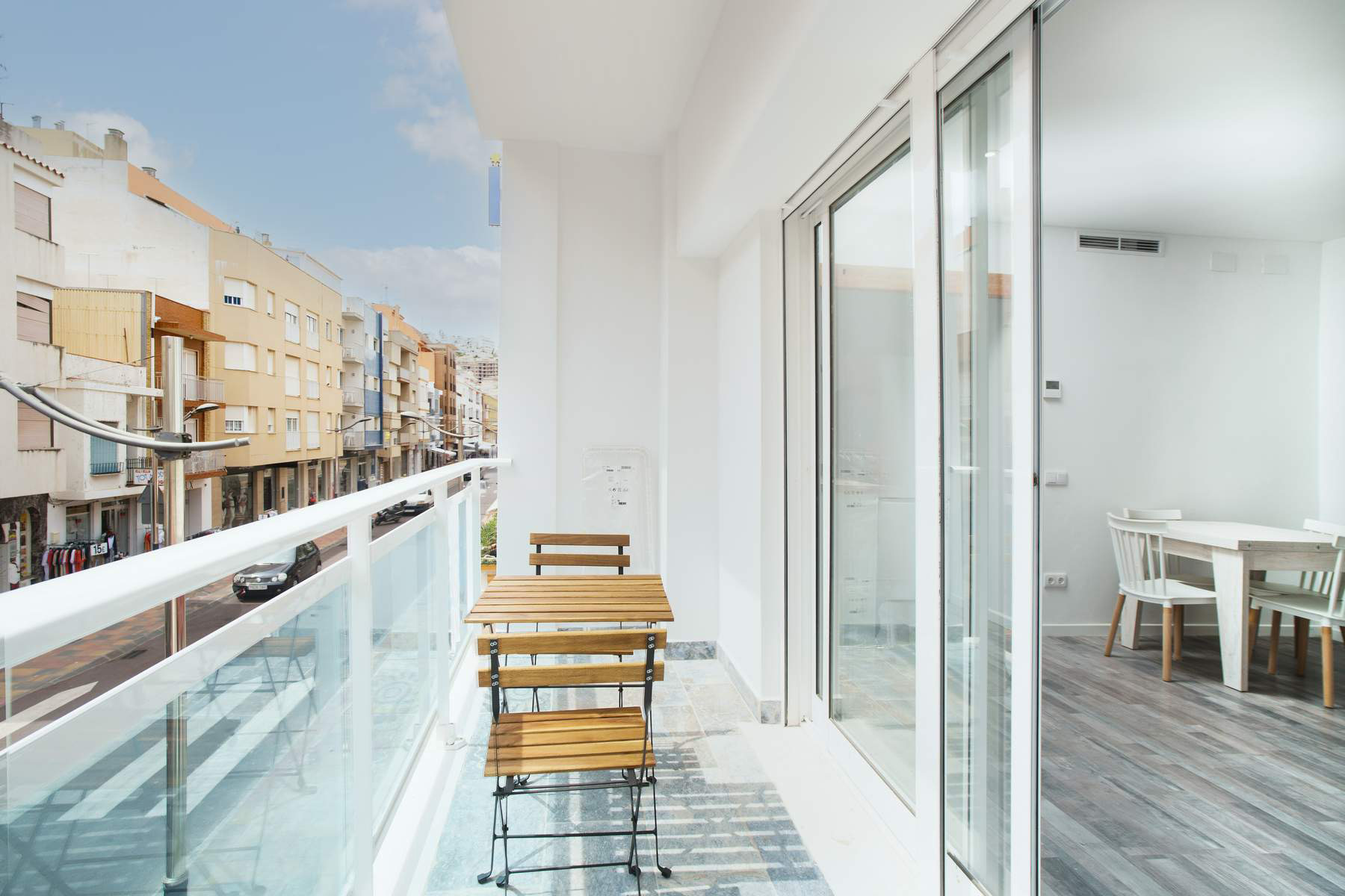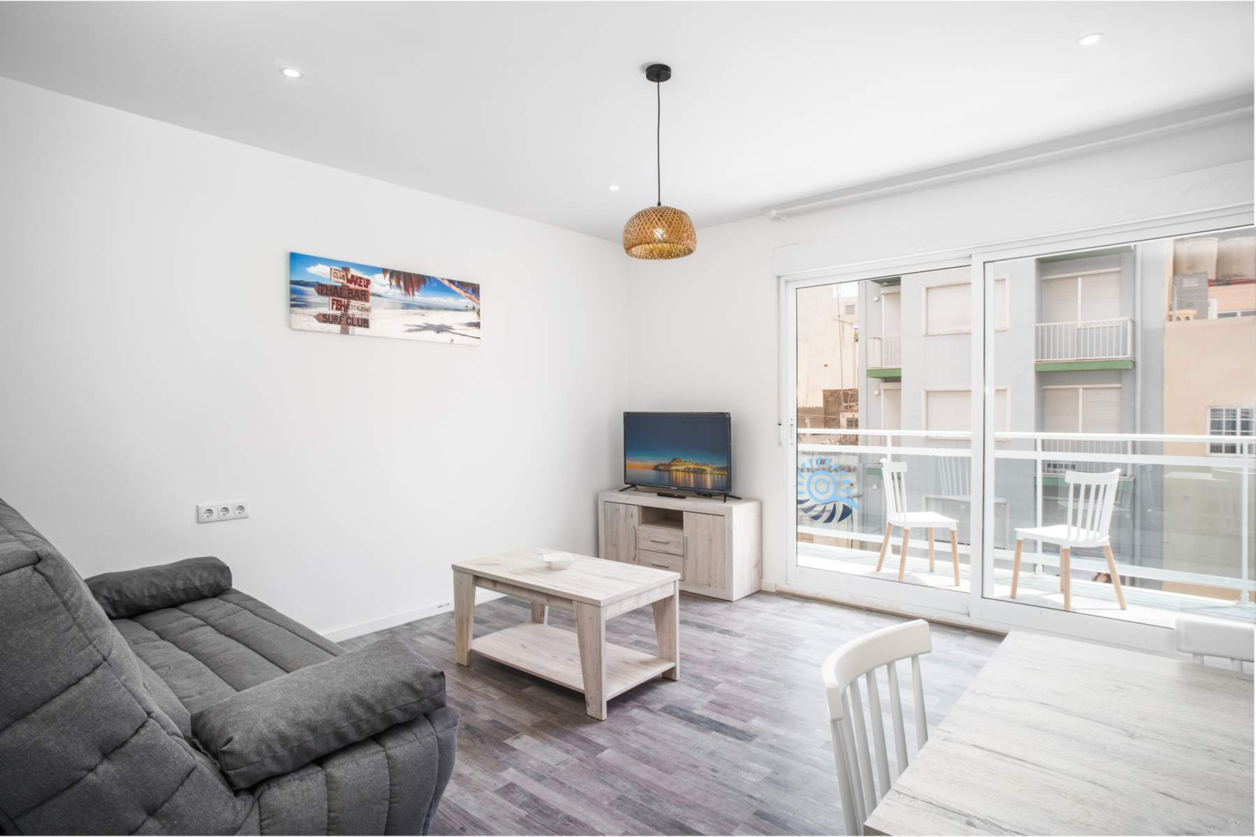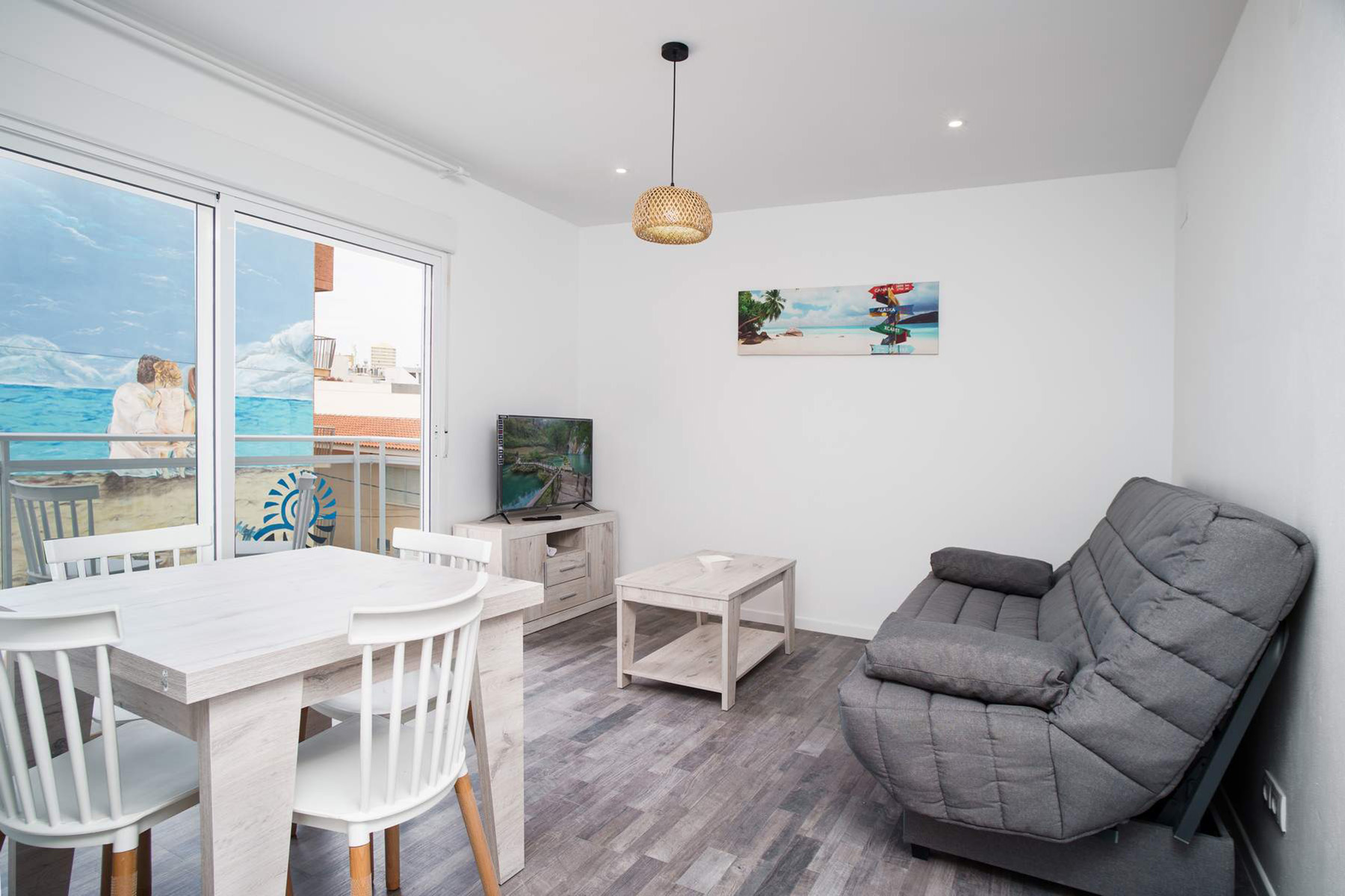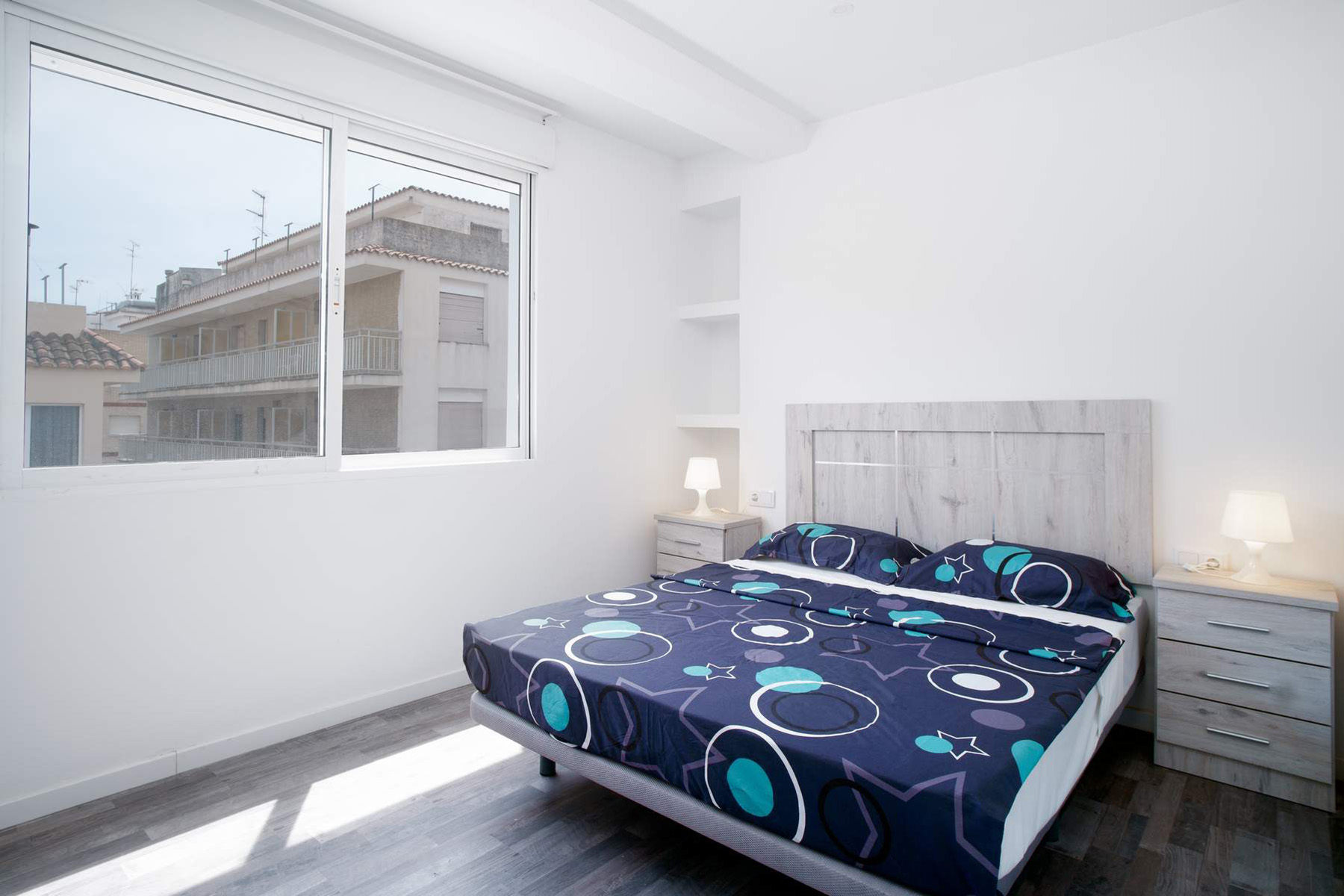 Un apartamento totalmente reformado con tres habitaciones (una con cama doble y dos con dos camas indivuduales) y un sofá cama en el comedor con capacidad máxima para 8 personas. Está situado en la Avenida España una de las calles más céntricas de la ciudad y a tan solo 200 metros de la playa Norte y Sur de Peñiscola. Tiene un baño, y balcón. Dispone de menaje de cocina y roma de cama, aire acondicionado y calefacción.