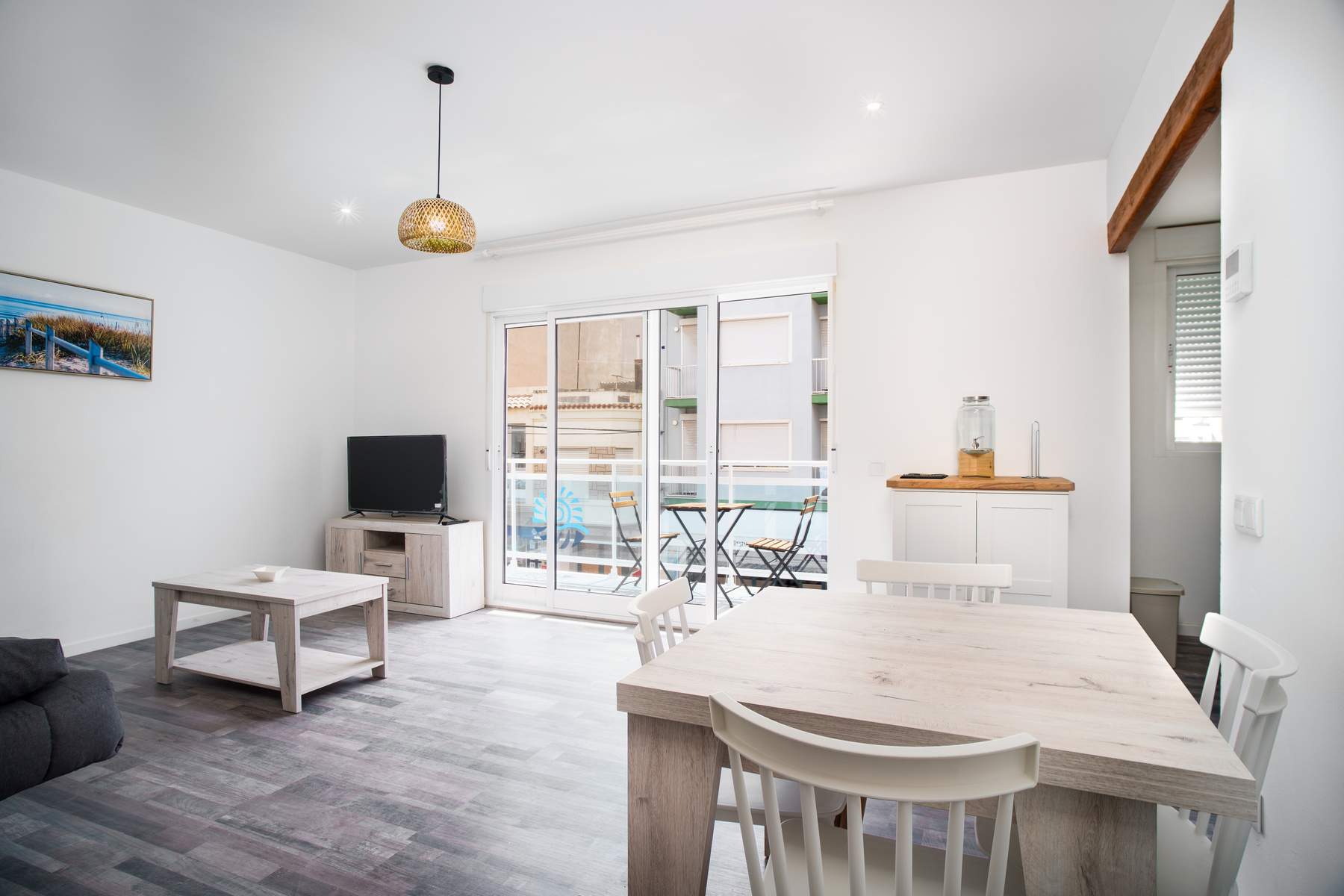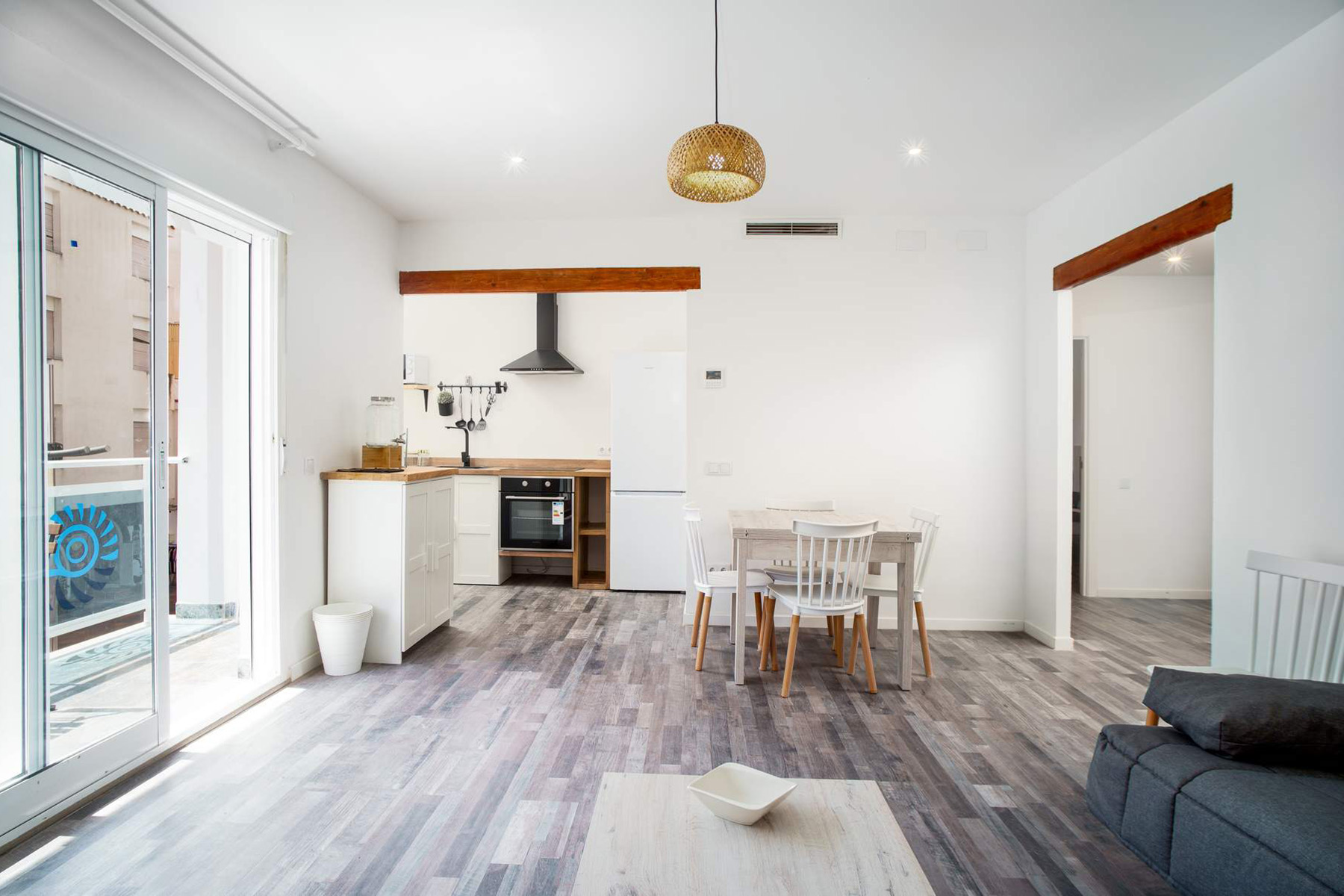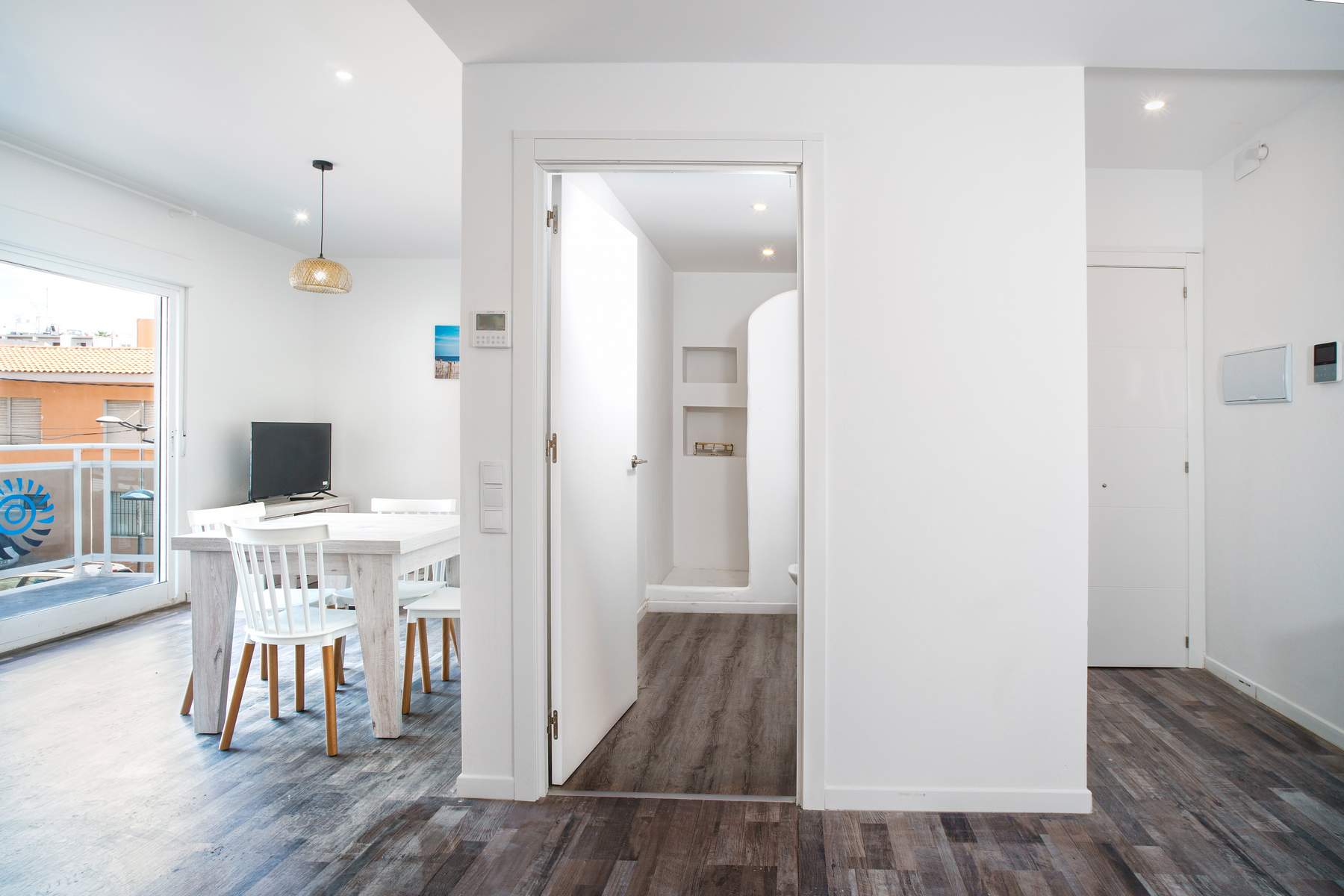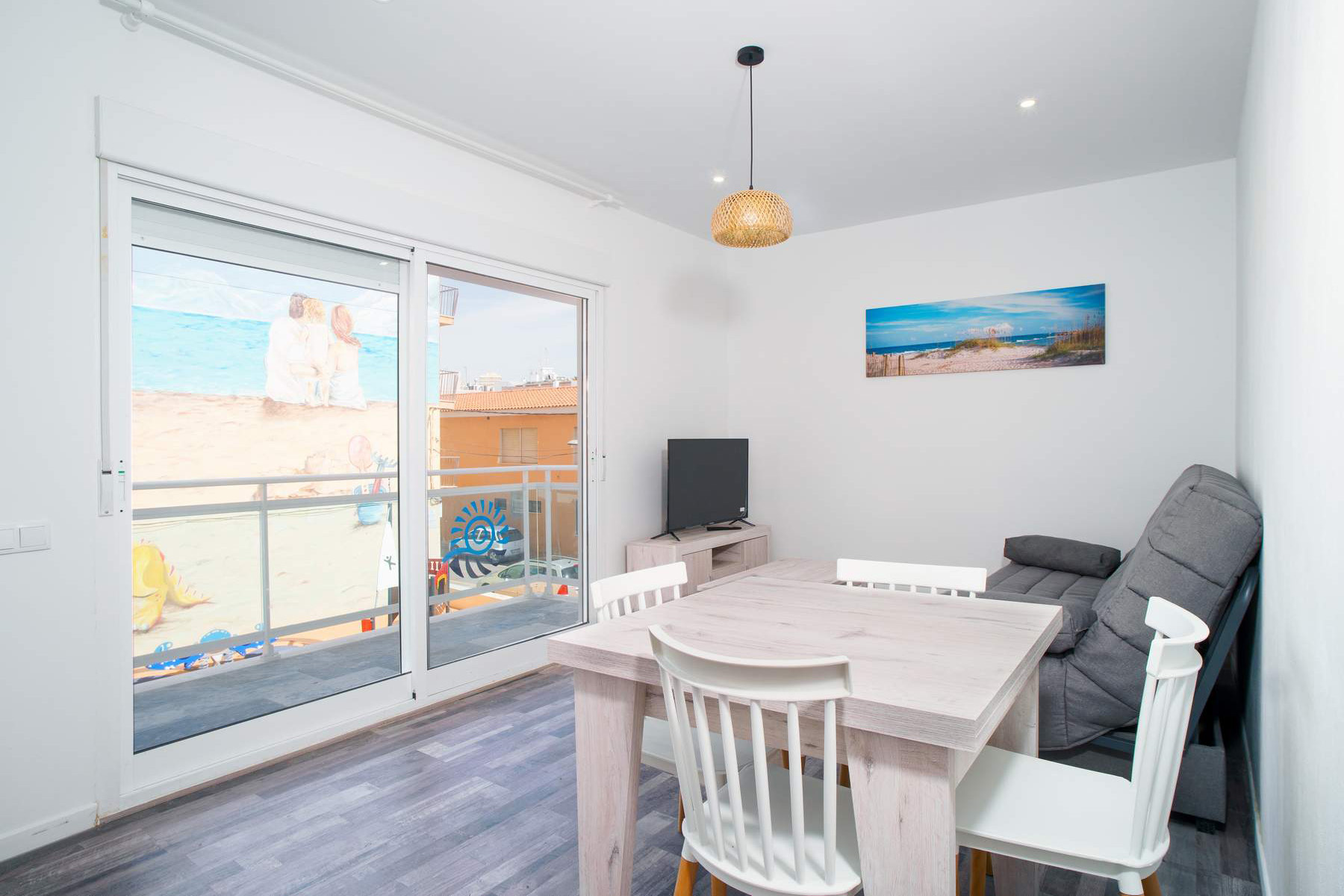 Un apartamento totalmente reformado con tres habitaciones (una con cama doble y dos con dos camas indivuduales) y un sofá cama en el comedor con capacidad máxima para 8 personas. Está situado en la Avenida España una de las calles más céntricas de la ciudad y a tan solo 200 metros de la playa Norte y Sur de Peñiscola. Tiene un baño, y balcón. Dispone de menaje de cocina y roma de cama, aire acondicionado y calefacción.