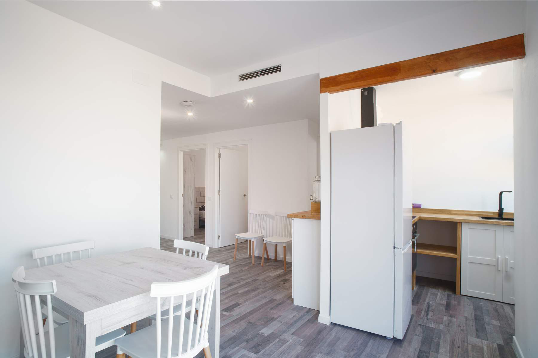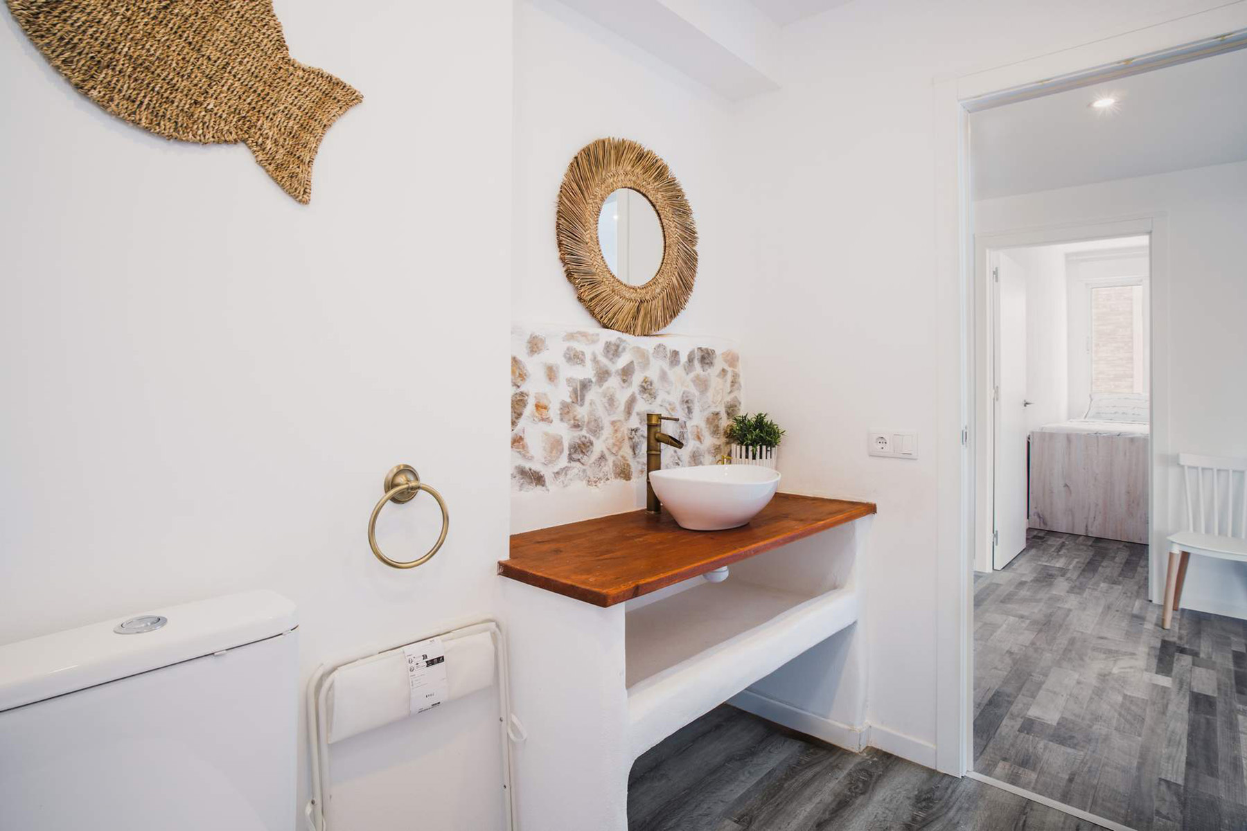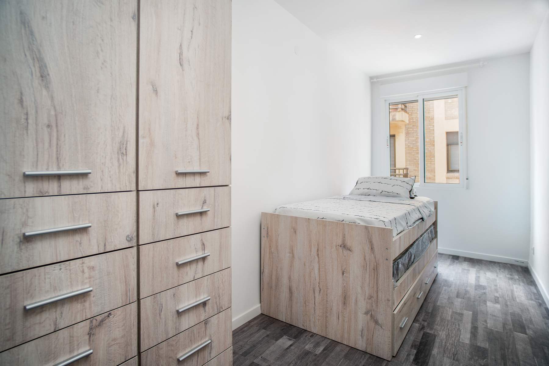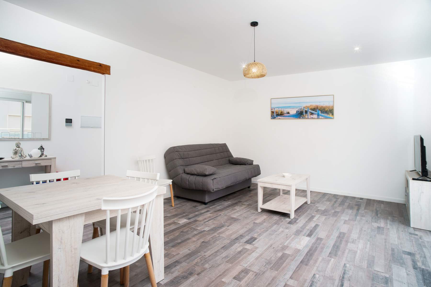 Un apartamento totalmente reformado con tres habitaciones (una con cama doble y dos con dos camas indivuduales) y un sofá cama en el comedor con capacidad máxima para 8 personas. Está situado en la Avenida España una de las calles más céntricas de la ciudad y a tan solo 200 metros de la playa Norte y Sur de Peñiscola. Tiene un baño, y balcón. Dispone de menaje de cocina y roma de cama, aire acondicionado y calefacción.