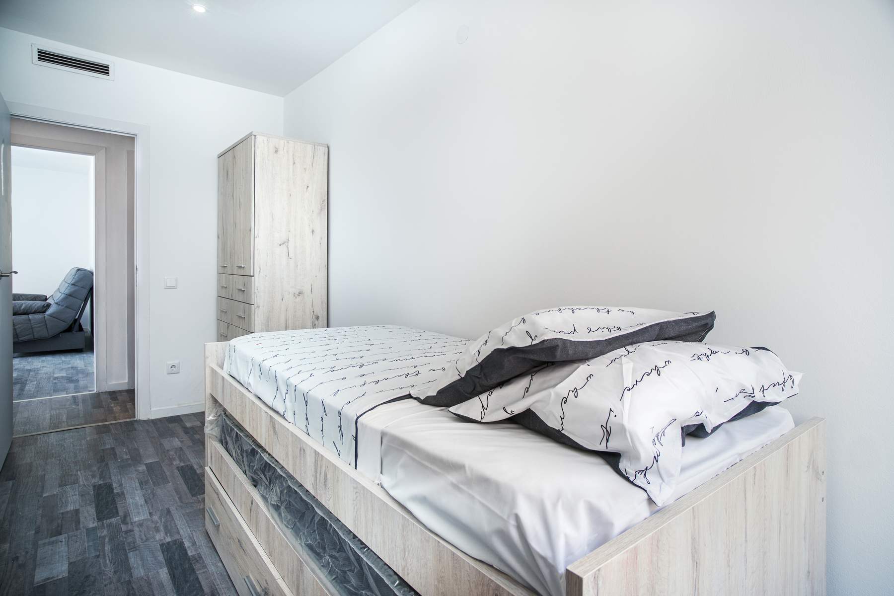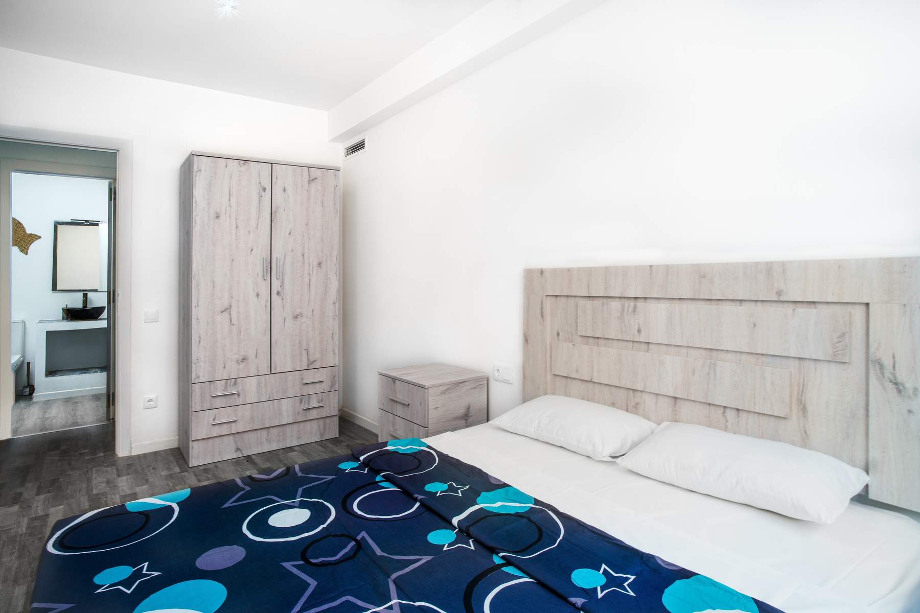 Las camas son de matrimonio (140cm) en los apartamentos vista ciudad y en los apartamentos vista mar hay una cama de matrimonio (140cm) y dos camas de 90cm. Además todos los apartamentos tienen un sofá cama de dos plazas.